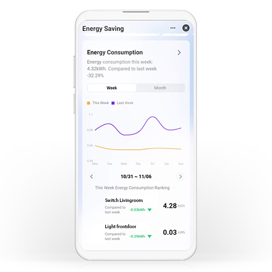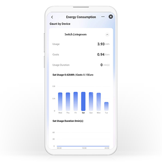 You can easily connect your products to one of the power monitors or smart plugs from the Nedis SmartLife range. Products can send data about their usage to the Nedis SmartLife app. When you set your energy prices you will get a clear overview of your costs. When you use a plug or switch without a power monitor, you can set the wattage of the product in the app. The app will give you an estimation of the consumption of the product.